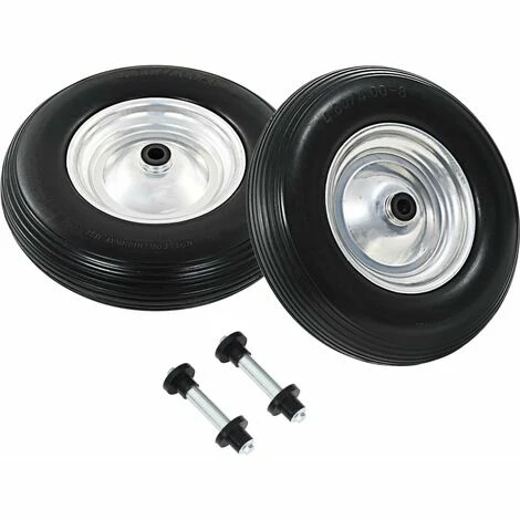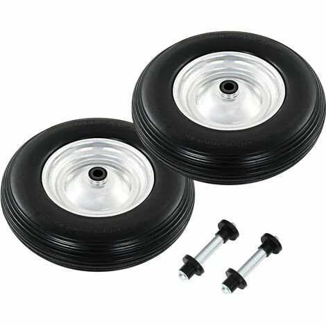 Fatigué de réparer les pneus crevés ? Alors nos roues de brouette increvables seront parfaites pour vous, car les pneus ont été fabriqués en matériau solide. Ces roues de rechange sont idéales pour une utilisation intensive lorsque vous transportez des charges avec votre brouette, chariot, diable, etc même sur des terrains irréguliers. Les pneus pleins sont fabriqués en élastomère PU résistant à l’abrasion et présentent une conception de bande de roulement spéciale qui offre une adhérence accrue à grande vitesse. Les jantes sont en métal robuste. Les roues de rechange ont une taille universelle et peuvent être facilement installées sur vos brouettes, diables, chariots, etc. La livraison inclut 2 roues et 2 axes.