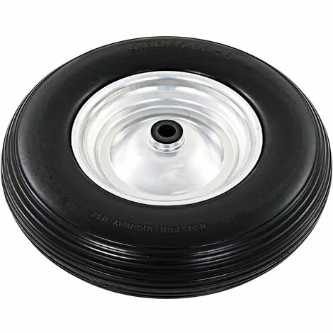 - Matériau : pneu en élastomère PU (polyuréthane) solide et jante en métal