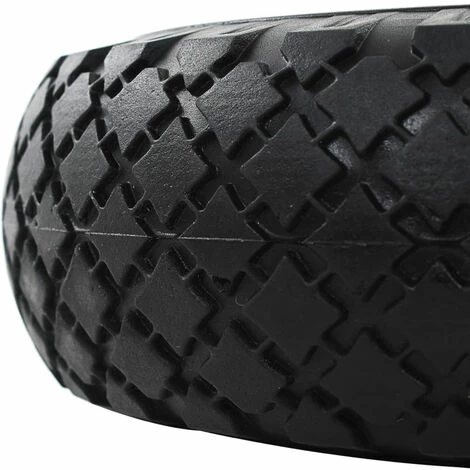 Ces roues de diable de rechange increvables sont idéales pour une utilisation intensive lorsque vous transportez des charges avec vos diables, chariots, brouettes, etc, même sur des terrains inégaux. Les pneus solides sont fabriqués en élastomère PU résistant à l’abrasion et présentent une conception de bande de roulement spéciale qui offre une adhérence accrue à grande vitesse. Les jantes sont en plastique robuste. Les roues de diable de rechange ont une taille universelle et peuvent être facilement installées sur vos diables, chariots, etc. La livraison inclut 2 roues.