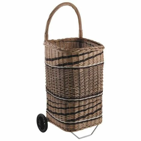 Chariot à bûches en osier sur roulettes