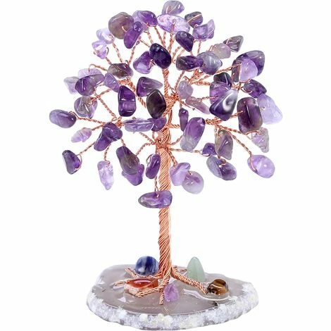 Taille pour Arbre de cristal,Hauteur d’Arbre 9-9.5cm; Taille de base d’agate: 6-7cm * 4-5cm;Arbre de vie sur base d’agate, fil de cuivre de haute qualité reliant des feuilles en pierre naturelle faites à la main.