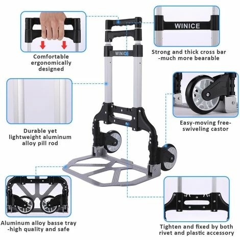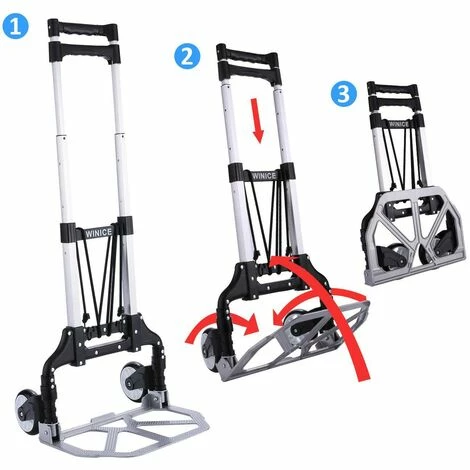 BETTER MAISON Chariot De Transport Pliable En Aluminium Poignée Télescopique Charge De 75kg – Argent
