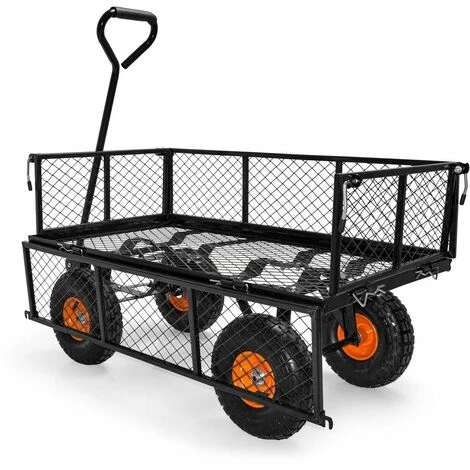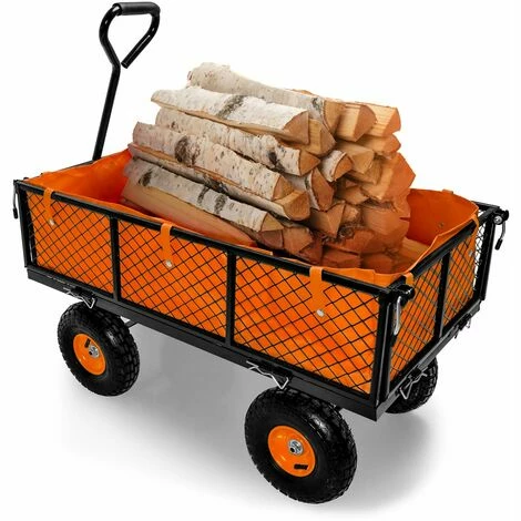 Chariot de jardin idĂ©al pour transporter du matĂ©riel de travail mais aussi du bois, des plantes, des boĂźtes de conserve et des matĂ©riaux lourds. Il a une capacitĂ© maximale de 350 kg et est Ă©quipĂ© d’une bĂąche interne doublĂ©e de PVC qui permet le transport de matĂ©riaux en vrac tels que la terre et le sable.Â