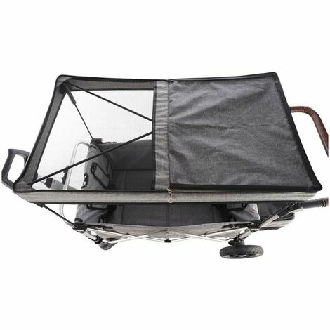 - Le toit avec protection anti-UV, trè s facile à dé monter, fait suffisamment d’ ombre aux enfants pour les jours ensoleillé s et peut mê me ê tre ouvert au besoin pour une meilleure visibilité sur l’ habitacle.