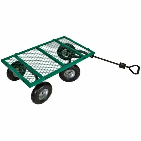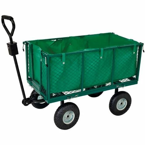 Description détaillée du produit Produit: Chariot remorque de jardin grillagé Dimensions de la cuve: L 99.5cm x P 51 cm x H 41 cm Dimensions totales du chariot: L 111 cmx P 51 cmx H 72.5/91.0cm poignée Capacité de charge: 300kg Roues gonflable avec chambre à air Diamètre du pneu 260mm alésage 16mm Matière de la housse: 600D textile Équipé d’un essieu directionnel et une poignée Coloris: vert Marque: Werkapro