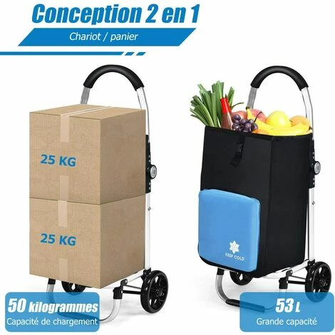 - ăCadre robuste en alliage d’aluminium pour une longue durabilitĂ© :ăDĂ©licatement fabriquĂ© avec un alliage d’aluminium sĂ©lectionnĂ©, le chariot de courses a une capacitĂ© de charge plus Ă©levĂ©e allant jusqu’Ă 50kg. Une excellente technologie de soudage et une connexion solide permettent au chariot d’ĂȘtre trĂšs solide et durable, capable de fournir une durĂ©e de vie plus longue.