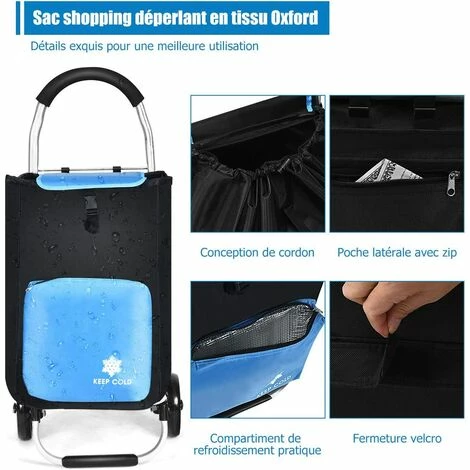 - ăUne conception facile Ă utiliser pour plus de commoditĂ© :ăLe chariot de courses trouve un Ă©quilibre parfait entre confort et facilitĂ© d’utilisation, ce qui se reflĂšte dans la poignĂ©e en mousse pour une prise en main en douceur et dans le design du cordon de serrage en cas de chute d’objets. Il est Ă©galement Ă©quipĂ© de doubles crochets qui permettent d’accrocher des sacs supplĂ©mentaires de maniĂšre beaucoup plus pratique.