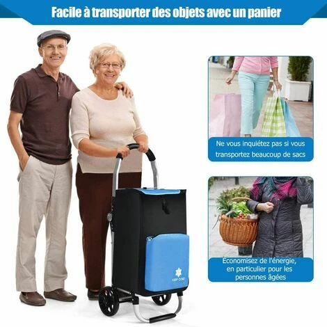 - ăLaissez le chariot transporter les courses et rouler oĂč vous voulez :ăLes roues qui roulent en douceur permettent une mobilitĂ© flexible, vous aidant Ă transporter les courses d’un endroit Ă l’autre avec moins d’effort manuel. Vous pouvez l’utiliser pour les courses, le camping, la lessive, le transport et bien plus encore. Par ailleurs, les roues fabriquĂ©es dans un matĂ©riau de haute qualitĂ© offrent une excellente rĂ©sistance Ă l’usure sur presque tous les terrains.