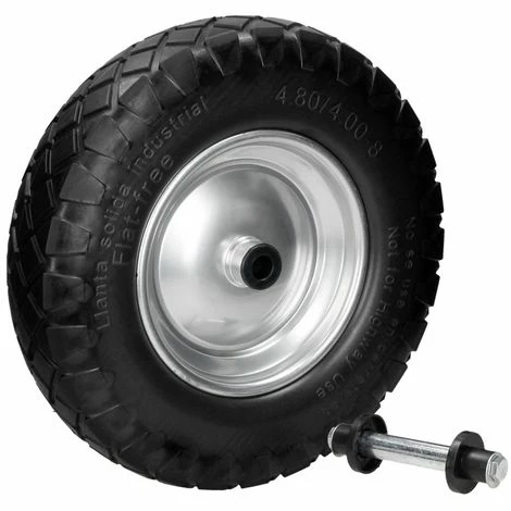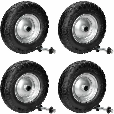 4 x Roue de brouette en caoutchouc plein PU 4.80 / 4.00-8 390 mm avec axe