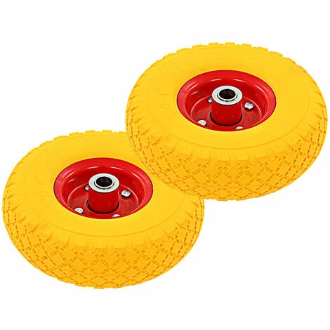 Ces roues de diable de rechange increvables sont idéales pour une utilisation intensive lorsque vous transportez des charges avec vos diables, chariots, brouettes, etc, même sur des terrains inégaux. Les pneus sont fabriqués en caoutchouc durable et résistant à l’abrasion, et présentent une conception de bande de roulement spéciale qui offre une adhérence accrue à grande vitesse. Les jantes sont en métal robuste. Les roues de diable de rechange ont une taille universelle et peuvent être facilement installées sur vos diables, chariots, etc. La livraison inclut 4 roues.