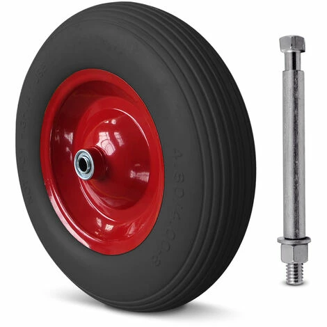 Vous êtes fatigués de devoir constamment gonfler les pneus de votrebrouette ou même de devoir les changer ? Plus de problème avec cetteroue anti-crevaison en PU avec jantes robustes en acier et roulements àbilles pour une conduite facile.