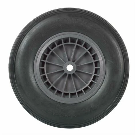 Roue increvable pour brouette, chariot, remorque etc…La roue est en polypropylene avec un axe de 20 mm, montĂ©e sur roulement Ă aiguilles.