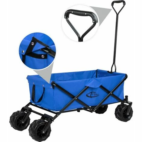 Présentation produit: Chariot de jardin pliable 80 kg tout-terrain outils jardinage bleu