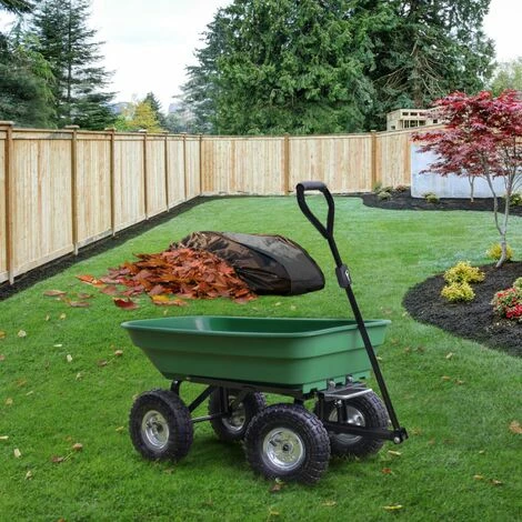 Descriptif du chariot de jardin 52LProfitez sans attendre du chariot pour jardin avec benne auto-basculante !Idéal pour transporter des charges, ce chariot vous permet aisément d’entreposer jusqu’à 120 Kg dans son bac de chargement de 52L. Son sac en polyester vous permet de transporter un grand tas de feuilles sans que ces dernières ne s’envolent ! Pratiques et maniables, les deux roues directionnelles du chariot vous permettent de le diriger facilement sur le chemin de votre choix. Son bac auto-basculant est idéal pour vider rapidement et sans effort le contenu de votre remorque, avec une capacité de déversement de 80Kg. Selon vos besoins, vous avez la possibilité d’accrocher le chariot à un tracteur ou quad grâce à sa poignée avec attache. Voilà la solution idéale pour transporter sans effort !Dimensions du chariot de jardin 52L- Dimensions hors tout : Longueur 100 x largeur 47 x Hauteur 45 / 93 CM- Dimensions du bac : L.85.5 x l.48.5 x H.18 CM – Contenance 52 L- Capacité de chargement du bac : 120 Kg- Capacité de chargement en déversement : 80 Kg- Matériaux : Bac plastique renforcé et armature en acier traité – Sac en polyester- Sac : 250 L (D.112 CM x H.66 CM) avec 3 sangles – Capacité de chargement du sac : 50 Kg- 4 roues gonflables tout terrain dont 2 directionnelles : D.24 x l. 7.5 CMRetrouver l’ensemble de nos produits d’entretien et accessoires pour le jardin sur notre boutique en ligne.