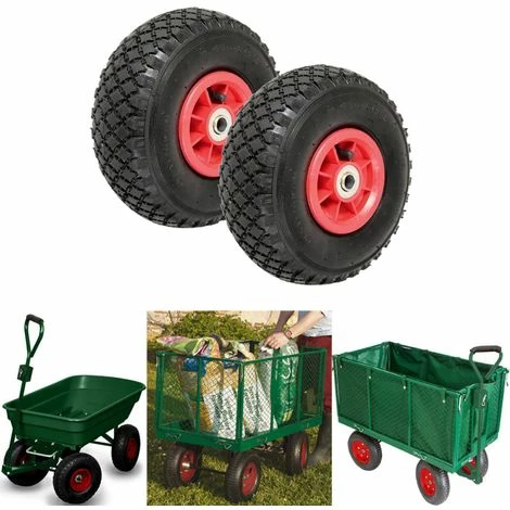 Descriptif du lot de deux roues gonflables axe 16mmChariez sans effort grâce à ce lot de deux roues gonflables charge lourde 150 kg, idéal pour diable, chariot, roue jockey etc…Vous pourrez utiliser ce lot de roues en toute sécurité.Le pneumatique gonflable à crampons permet une adhésion au sol et facilite les déplacements. Ces deux roues gonflables avec valve ont une capacité de charge jusqu’à 150 kg par roue. Les roues sont crantées avec un diamètre de l’axe 16mm en acier. Le corps est en polypropylène pour une haute résistance. Les roues sont équipées d’un roulement à billes, largeur de la bande 85mm, diamètre de la roue 260mm.Dimensions du lot de deux roues gonflables- Diamètre de la roue : 260x85mm- Diamètre d’alésage de l’axe central : 16mm en acier- Large bande de roulement crantée antiglisse 85mm- Capacité de charge par roue : jusqu’à 150 kgEquipée d’un solide roulement à billes, pour une rotation parfaitement fluide.Equipée d’une valve.