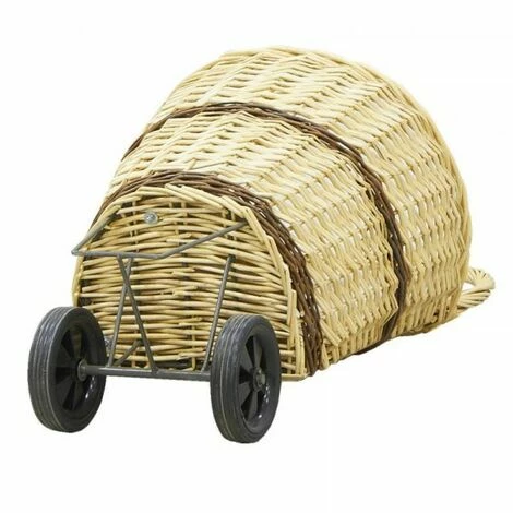Chariot à bûches en osier blanc et brut. Fond bois anti-poussière. Chassis et anse monobloc métalliques.Matières : osier blanc et osier brut