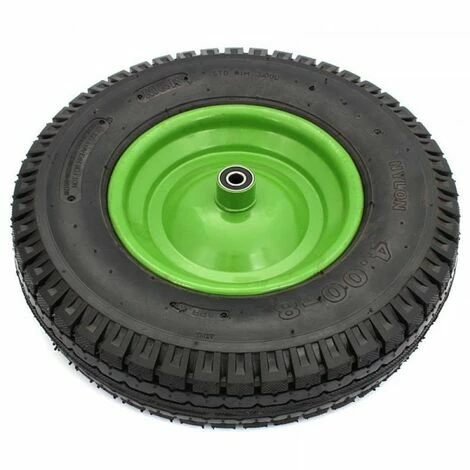 Roue pour brouettes – 6 couches dans la toile Les vues, augmente plusieurs fois du moment où le pneu, le roulement à rouleaux fournit une forte rotation de roue léger, même dans des conditions difficiles, le type de construction. bande de roulement améliorée et des pneus plus larges permettent de guidage des roues plus fiables dans des conditions difficiles. Régler le pivot pneumatique tube intérieur 12 mm, la taille 16x400x8