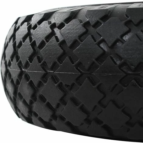 - Matériau : pneu en élastomère PU (polyuréthane) solide et jante en plastique