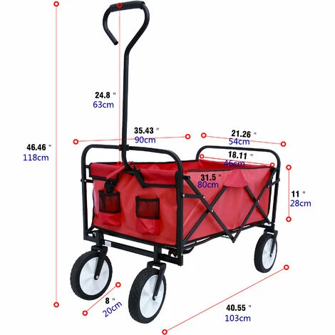 【PLIAGE ET STOCKAGE FACILES】 Le chariot d’extérieur a une conception de corde de traction interne, quelques secondes peuvent facilement se plier et s’étendre, sans installation, opération simple. Le wagon peut être plié jusqu’à seulement 20,3 cm d’épaisseur, environ 76 L x 54 P x 22 H cm plié, et peut être plié dans un sac portable et peu encombrant, ou facilement rangé dans un placard, un garage ou un coffre de voiture.