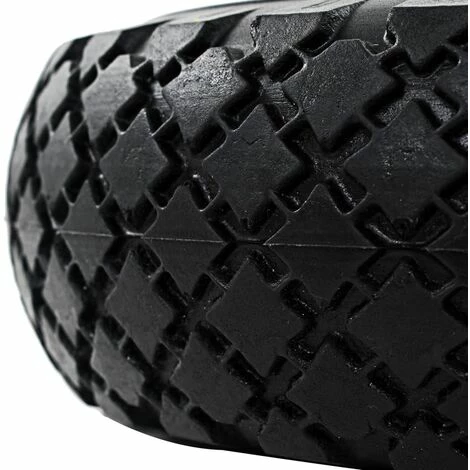 - Matériau : pneu en élastomère PU (polyuréthane) solide et jante en métal