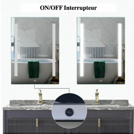 ORGANNICE Miroir Lumineux, Miroir De Salle De Bain, Miroir Mural Anti-buée Avec éclairage LED – Chrome