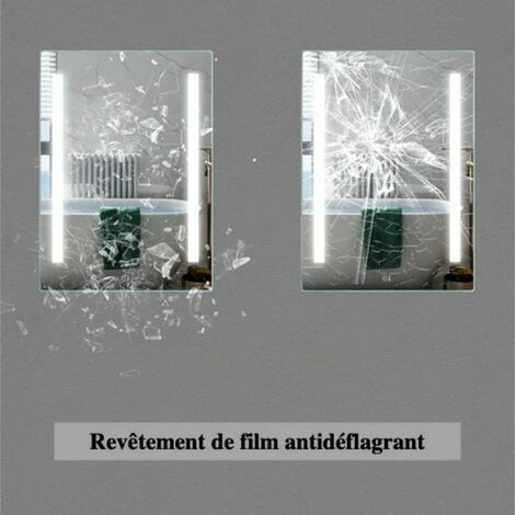 Miroir dimmable – ce miroir est adapté à différents type d’environnements de luminosité.Lumières LED à économie d’énergie – Lumière de couleur blanche à température monochromatique (5000K), ceinture lumineuse étanche CRI 80 pour garantir que l’environnement est suffisamment lumineux pour le maquillage et le rasage tout en économisant de l’énergie.Incassable – 4 centimètres de miroir de protection de l’environnement recouvert d’un film antidéflagrant et d’un film protecteur pour miroir afin qu’il ne se brise pas facilement. Même s’il est cassé, il ne se brisera pas en morceaux.Étanche – Toutes les pièces électriques sont entièrement recouvertes d’un boîtier classé IP44, garantissant un éclairage sûr dans les environnements de salle de bain humides.Facile à installer – Ce que vous devez faire est de fixer le miroir au mur, puis d’utiliser la prise pour l’alimentation ou de connecter le fil à l’interrupteur mural par un fil dur. Le miroir rond rétroéclairé par LED est livré avec un câble de 150 cm de long qui répond à la norme CE, vous pouvez placer le miroir à n’importe quel endroit de la salle de bain sans limitation. Lumières LED à économie d’énergie – Lumière de couleur blanche à température monochromatique (5000K), ceinture lumineuse étanche CRI 80 pour garantir que l’environnement est suffisamment lumineux pour le maquillage et le rasage tout en économisant de l’énergie.Miroir illuminé à intensité variable – Il s’agit d’un miroir qui, avec un interrupteur tactile, appuyez pour s’allumer et régler la luminosité en appuyant longuement. Avec une lumière de couleur blanche (5 000 K), la ceinture lumineuse étanche CRI 80 garantit que l’environnement est suffisamment lumineux pour le maquillage et le rasage tout en économisant de l’énergie. Incassable – Notre miroir est un miroir de protection de l’environnement de 4 centimètres recouvert d’un film antidéflagrant et d’un film protecteur pour miroir afin qu’il ne se casse pas facilement. Même s’il est cassé, il ne se brisera pas en morceaux.Facile à installer – Ce que vous devez faire est uniquement de fixer le miroir au mur, puis d’utiliser la prise pour l’alimentation ou de connecter le fil à l’interrupteur mural par un fil dur. Le miroir rond rétroéclairé par LED est livré avec un câble de 150 cm de long qui répond à la norme CE, vous pouvez placer le miroir à n’importe quel endroit de la salle de bain sans limitation.