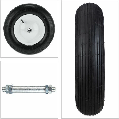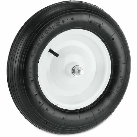 Besoind’une nouvelle roue pour votre brouette ? Cette roue 4.80 4.00-8 vous garantitun confort de conduite sur tous les sols. Grâce à la valve, la roue de rechangese gonfle rapidement et est prête à l’emploi en quelques secondes. Son axe avecroulement à billes et sa surface profilée facilitent le port de la brouettemême lorsque cette dernière contient de lourdes charges allant jusqu’à 120 kg.La jante en acier blanche offre une résistance optimale.