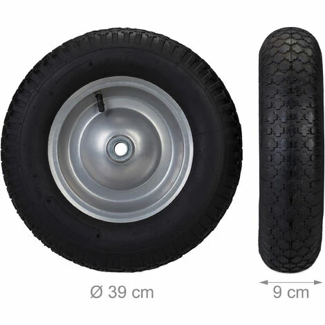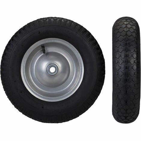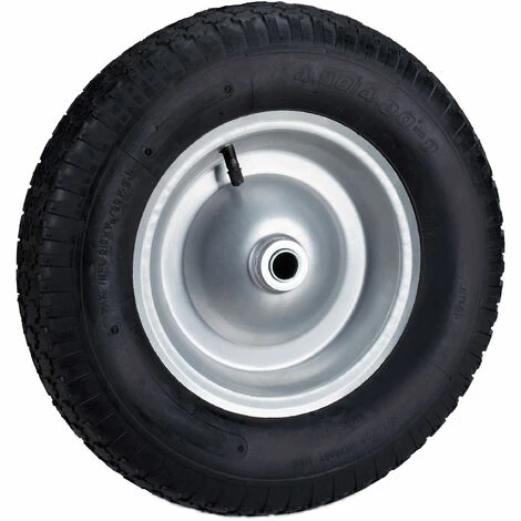 Si vous avez besoin d’une roue pour votre brouette de jardin, optez pour cette roue en caoutchouc 4.80 4.00-8. La roue en air givré est résistante aux épines, clous et autres objets tranchants. Le roulement à billes et la surface profilée offrent un transport confortable de votre brouette ou chariot. La roue est disponible en noir et gris. Cette roue convient pour les brouettes, chariots ou autres du commerce. La jante est faite en acier gris. Le gonflage se fait rapidement et facilement.
