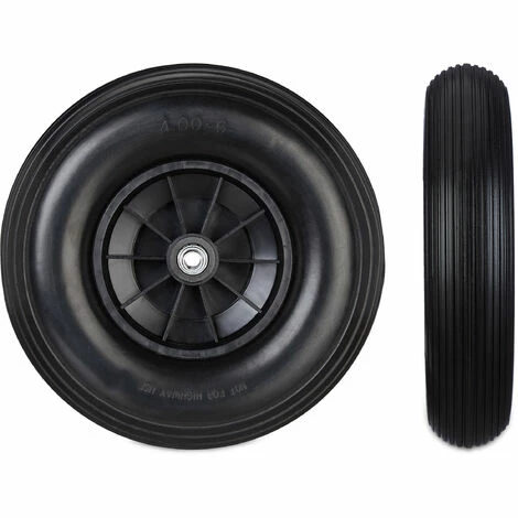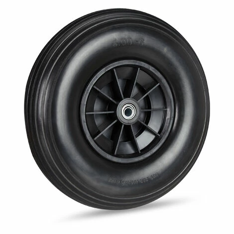 Relaxdays Roue De Brouette Caoutchouc 4.00-6, De Rechange Axe, Increvable, Essieu, 3 Adaptateurs, 100 Kg, Noir
