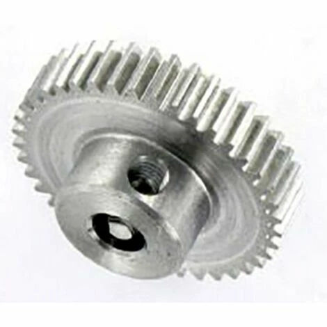 Les moyeux ont deux taraudages M3 et la vis sans tête fournie permet de réaliser une liaison cinétique entre le pignon et l’arbre.