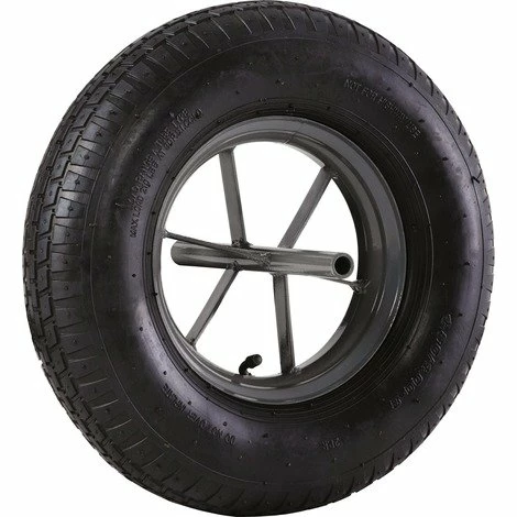 Roue gonflable de rechange Ø 400 mm, jante métal à rayons, fixation coussinetsLivrée avec 2 coussinets polyamideCompatible avec les brouettes…
