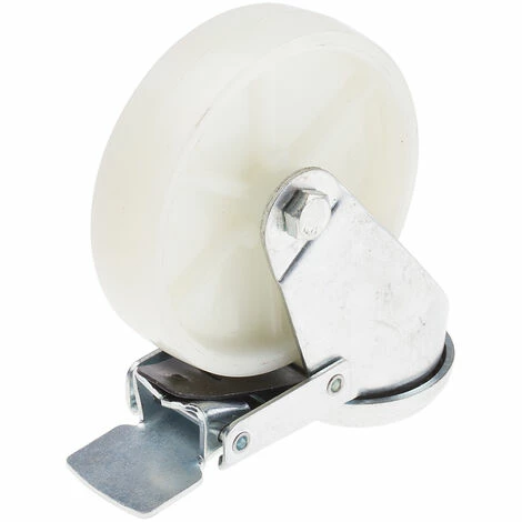Roue en polypropylène, charge légère. Une gamme de haute qualité de roulettes de marque RS. Equipées de roues en polypropylène blanc avec un moyeu à roulement simple, ces roulettes ont une bonne capacité de charge et ne marquent pas les sols durs tels que le ciment ou le carrelage. Faciles à manœuvrer et résistantes. Résistant aux impacts Moyeu à roulement simple Capacité de charge de 50 à 250 kg Diamètre de roue de 50 à 200 mm Variantes à plaque supérieure ou trou de passage en acier pressé Roue en polypropylène blanc