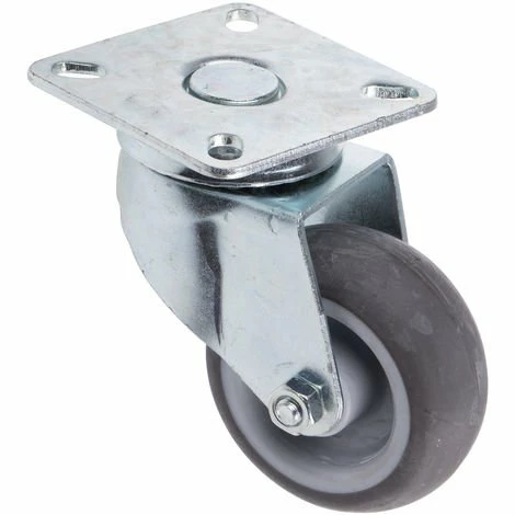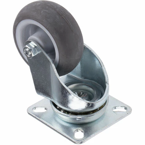 Roulette grise en caoutchouc. Sans frein, pivotante Corps en acier pressé galvanisé Bandage en caoutchouc. Roulement de moyeu simple