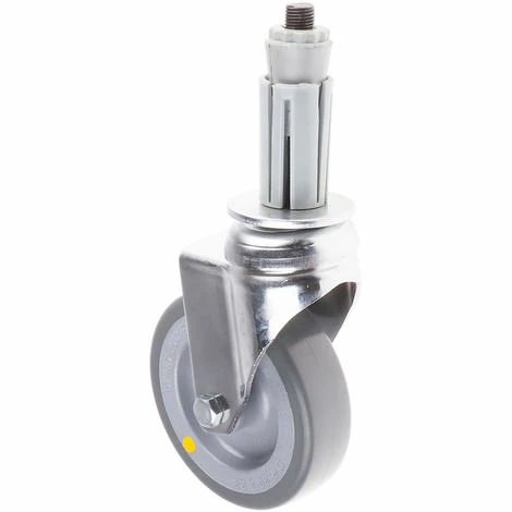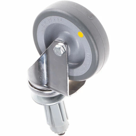 Pneu en caoutchouc gris, antistatique – Roulette de fixation de module d’extension. Pneus en caoutchouc antistatiques gris Fourches chromées Applications d’utilisation modérée à moyenne Roulettes pivotantes munies d’une double bague de roulement à billes dans la tête pivotante Fixation de module d’extension circulaire avec plage de 21,8mm à 24,5mm