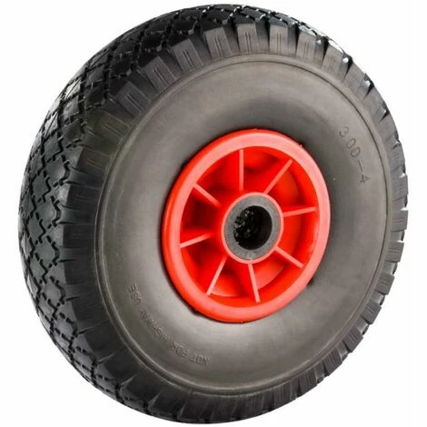 Ces roues increvables permettent de travailler dans toutes les situations. Idéal pour remplacer une roue de diable de manutention. Corps de la roue en plastique et bandage en mousse polyuréthane. Dimension: Ø 260 x 75 mm axe: 25 mm. Charge maxi supportée par la roue: 100 kg