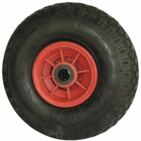 Description Corps de roue polypropylène noir. Bandage pneumatique, chambre à air.Roulements rouleaux.
