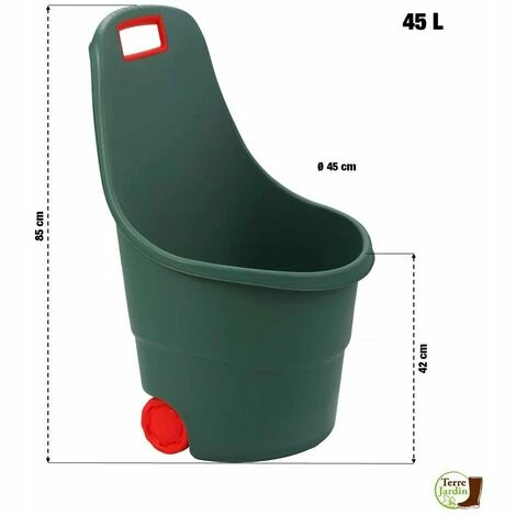 - Ce chariot de jardin en plastique d’une capacité de 45 litres a été spécialement conçu pour vous accompagner dans tous vos travaux d’entretien extérieur.