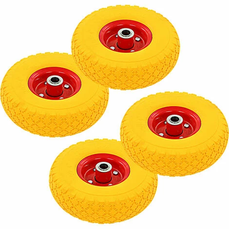 Ces roues de diable de rechange increvables sont idéales pour une utilisation intensive lorsque vous transportez des charges avec vos diables, chariots, brouettes, etc, même sur des terrains inégaux. Les pneus sont fabriqués en caoutchouc durable et résistant à l’abrasion, et présentent une conception de bande de roulement spéciale qui offre une adhérence accrue à grande vitesse. Les jantes sont en métal robuste. Les roues de diable de rechange ont une taille universelle et peuvent être facilement installées sur vos diables, chariots, etc. La livraison inclut 4 roues.