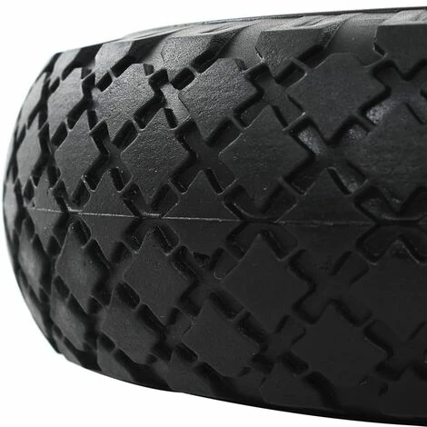 Ces roues de diable de rechange increvables sont idéales pour une utilisation intensive lorsque vous transportez des charges avec vos diables, chariots, brouettes, etc, même sur des terrains inégaux. Les pneus solides sont fabriqués en élastomère PU résistant à l’abrasion et présentent une conception de bande de roulement spéciale qui offre une adhérence accrue à grande vitesse. Les jantes sont en plastique robuste. Les roues de diable de rechange ont une taille universelle et peuvent être facilement installées sur vos diables, chariots, etc. La livraison inclut 4 roues.
