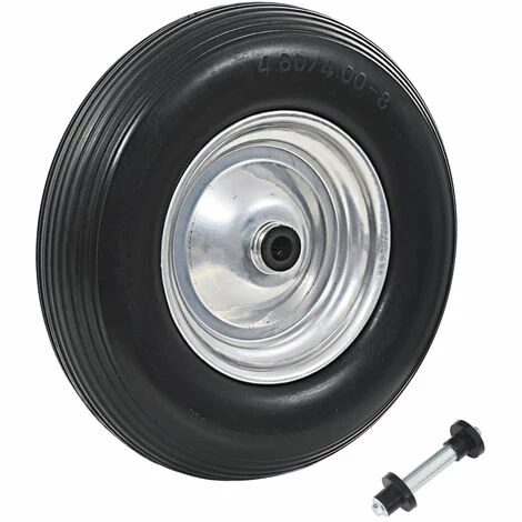 Le pneu plein est fabriqué en élastomère PU durable et résistant à l’abrasion, et présente une conception de bande de roulement spéciale qui offre une adhérence accrue à grande vitesse. La jante est en métal robuste. La roue de rechange pour chariot a une taille universelle et peut être facilement installée sur votre brouette, chariot, diable, etc.