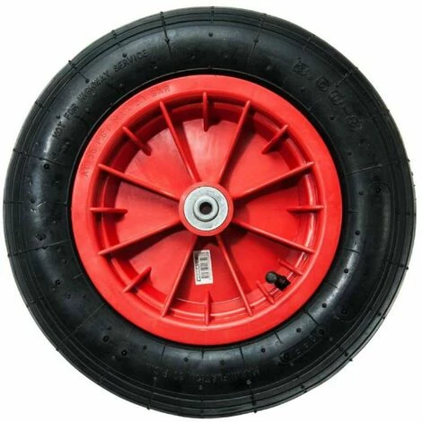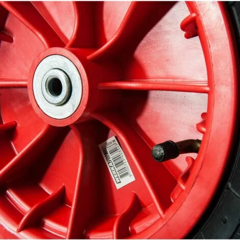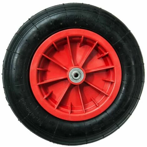 Informations techniques: Roue gonflable Dimensions: 14 » Diamètre: 360 mm Largeur: 85 mm Alésage: 10 mm Moyeu: 74 mm Roulements à billes Coloris de la jante: Rouge