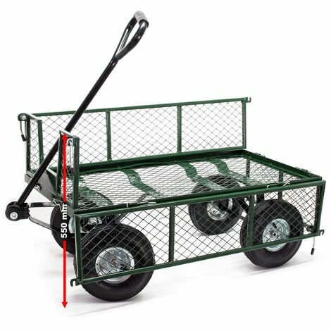 Ce chariot de transport est une aide indispensable pour le jardinage; les feuilles, les écorces, du sol, des fruits, du bois ou bien encore des dispositifs peuvent être transportés de manière facile.
