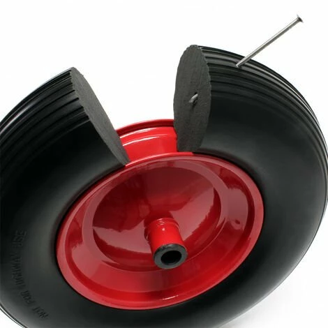 Cette roue increvable vous évite à l’avenir des crevaisons pénibles. Vous recevrez une roue de haute qualité, increvable avec un diamètre de 400 x 100 mm sur jante en tôle d’acier prémonté avec roulements à rouleaux.