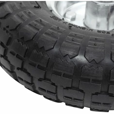 Ces roues de diable de rechange increvables sont idéales pour une utilisation intensive lorsque vous transportez des charges avec vos diables, chariots, brouettes, etc, même sur des terrains inégaux. Les pneus sont fabriqués en caoutchouc durable et résistant à l’abrasion, et présentent une conception de bande de roulement spéciale qui offre une adhérence accrue à grande vitesse. Les jantes sont en métal robuste. Les roues de diable de rechange ont une taille universelle et peuvent être facilement installées sur vos diables, chariots, etc. La livraison inclut 4 roues.